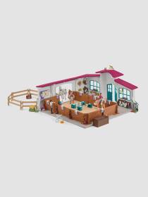 Lasta hästen i transporten och kör iväg. I det här setet får barnet tillgång till en bil med hästtransport. I setet ingår det också två figurer och en häst samt massor med tillbehör för att kunna sköta och rida hästen som t.ex. sadel, hjälm, träns, hönät, borstar m.m.