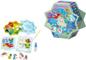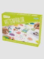 Att skapa med vattenpärlor är jättekul och ger väldigt fina resultat. Dessa pärlor behöver inget strykjärn för att fixeras. Istället placerar barnet pärlorna enligt önskat mönster på en speciell pärlplatta. Därefter sprayar man bara vatten över det färdiga resultatet som därmed fixeras.